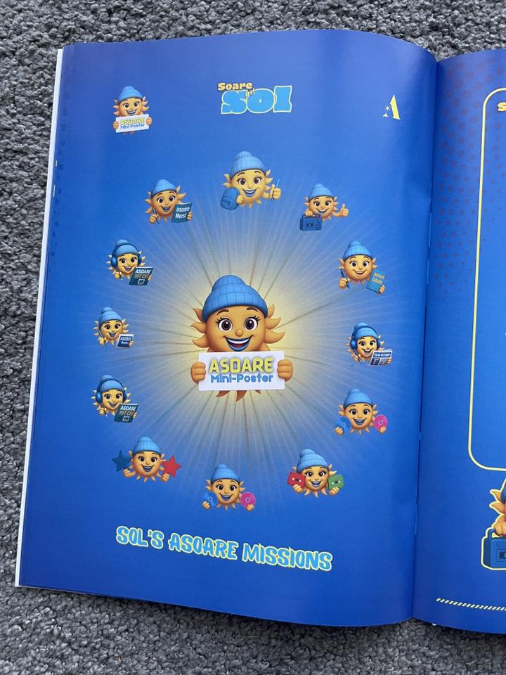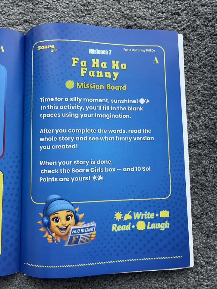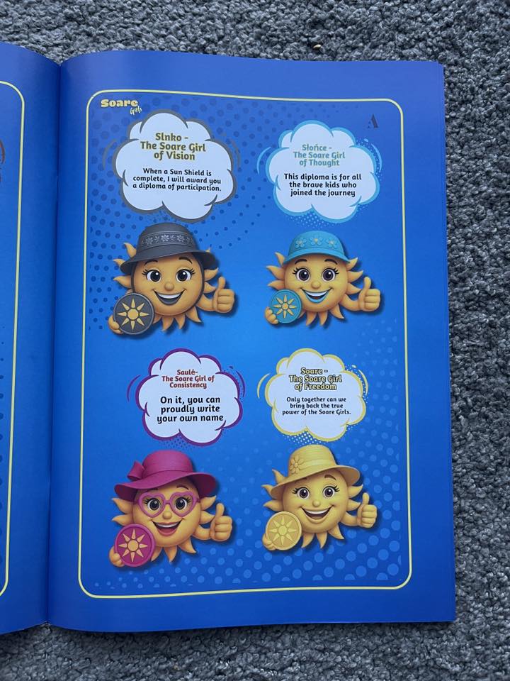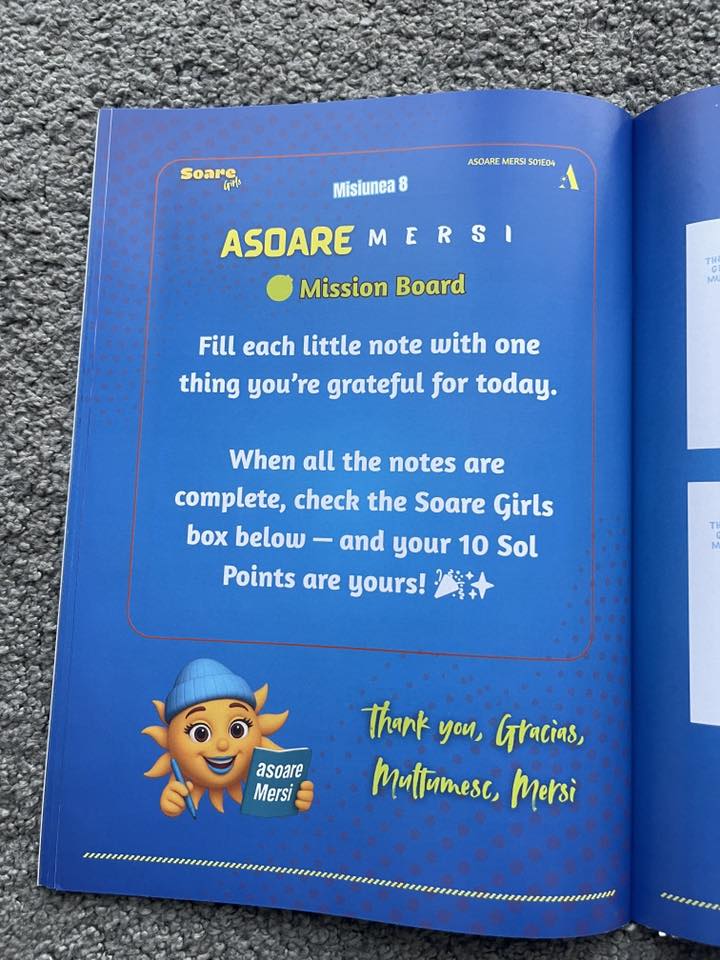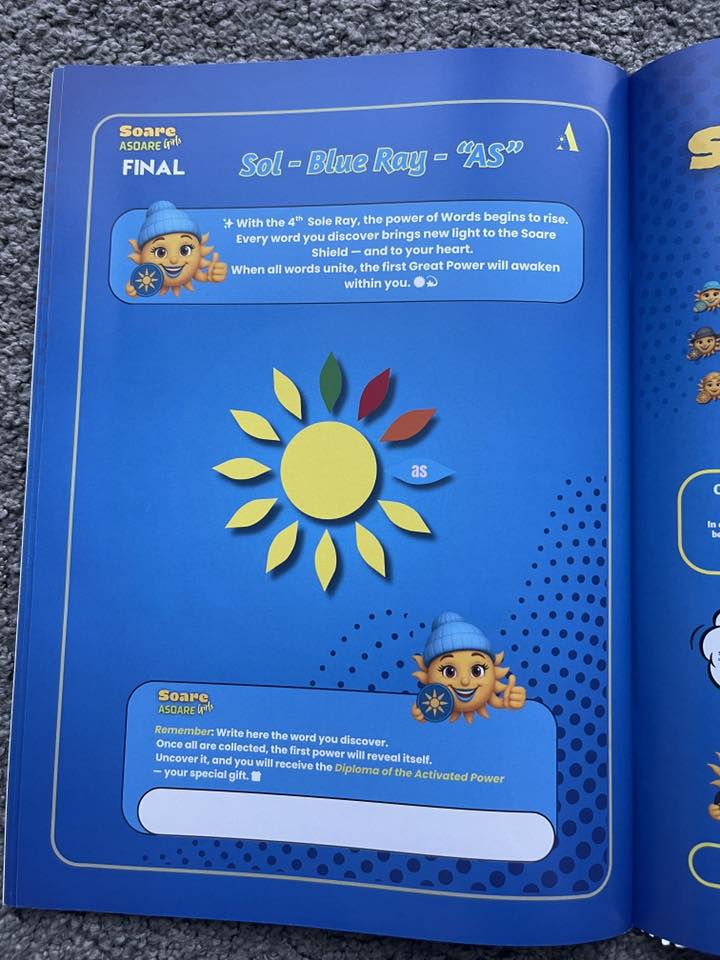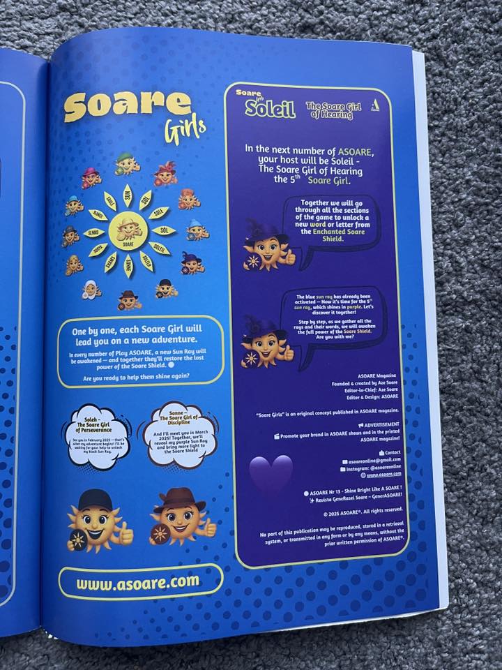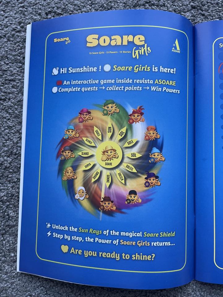 In ASOARE NR 13, the story of the Soare Girls continues — 13 magical girls who lost their powers. Each number reveals a new Sun Ray, a word of power that lights up the Soare Shield and brings them closer to awakening the Great Light. 🌞